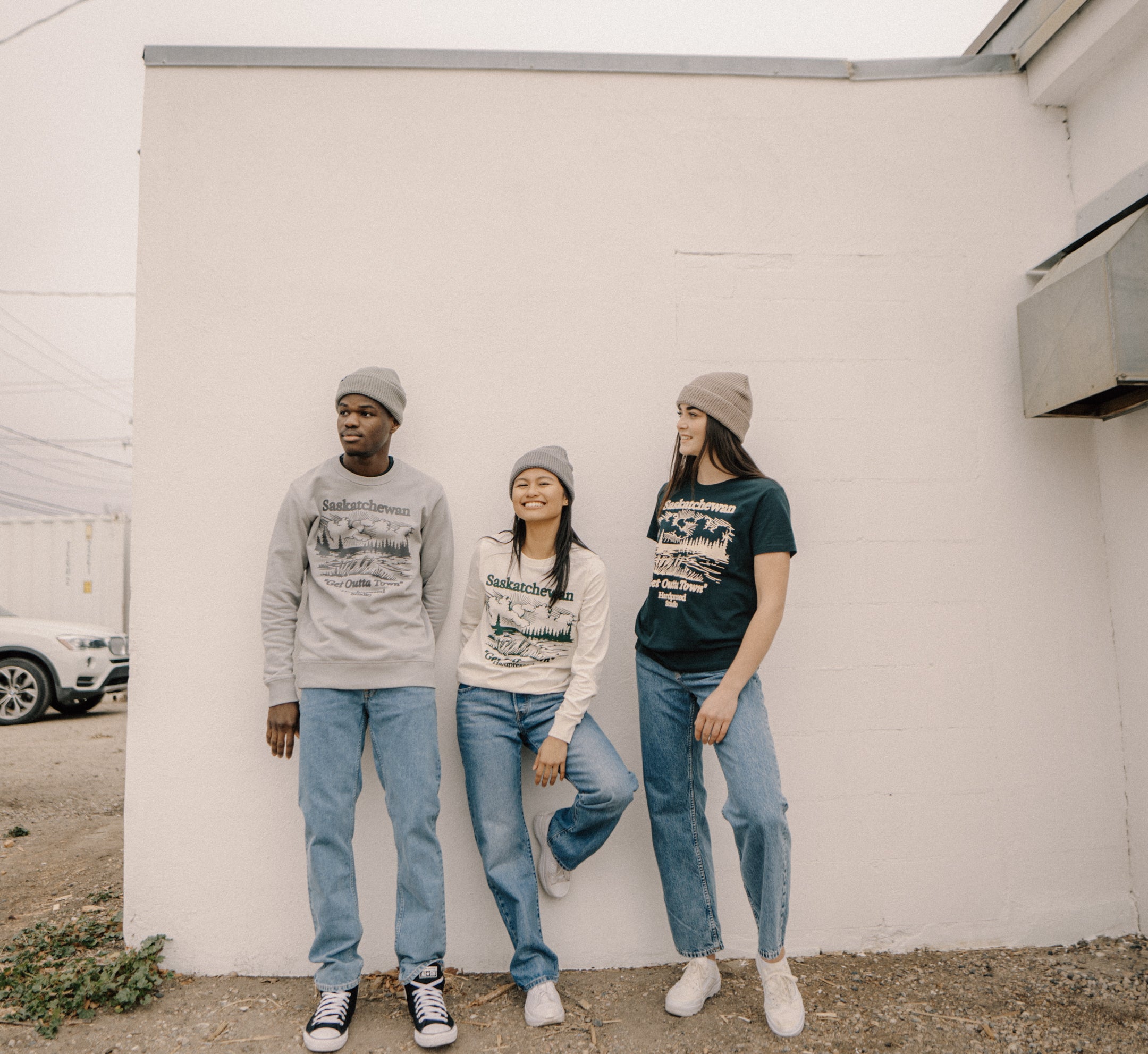 Get outta town and enjoy the view. The “Head North” design admires the beauty of Northern Saskatchewan, featuring its evergreen landscape. Like a souvenir tee that you got on a pit-stop.