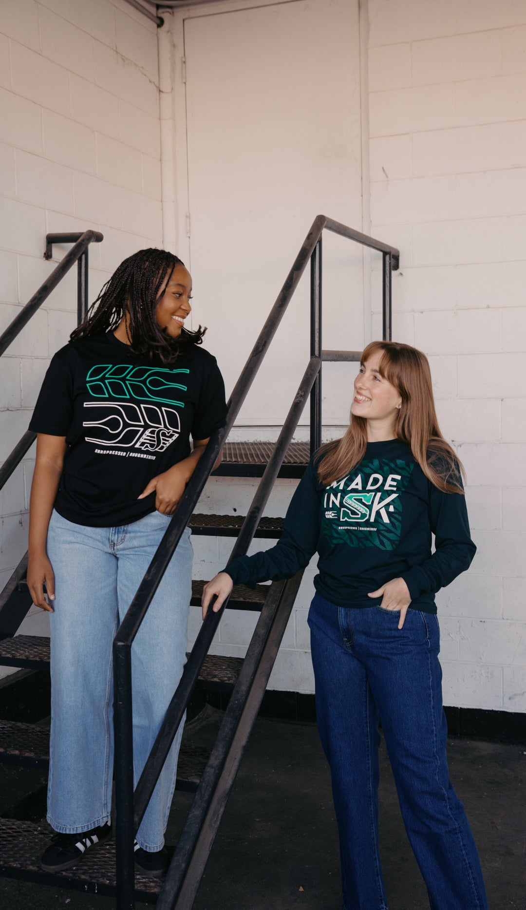 Now available on unisex t-shirts, long sleeves, and bunnyhugs. In-store and online while quantities last.