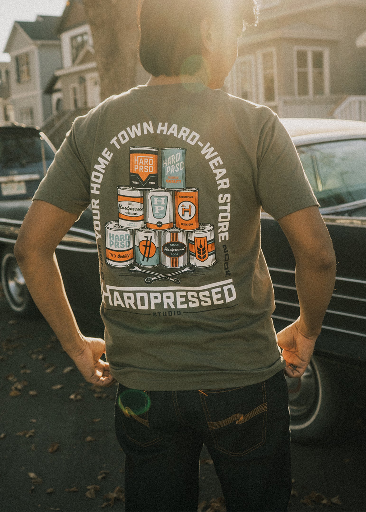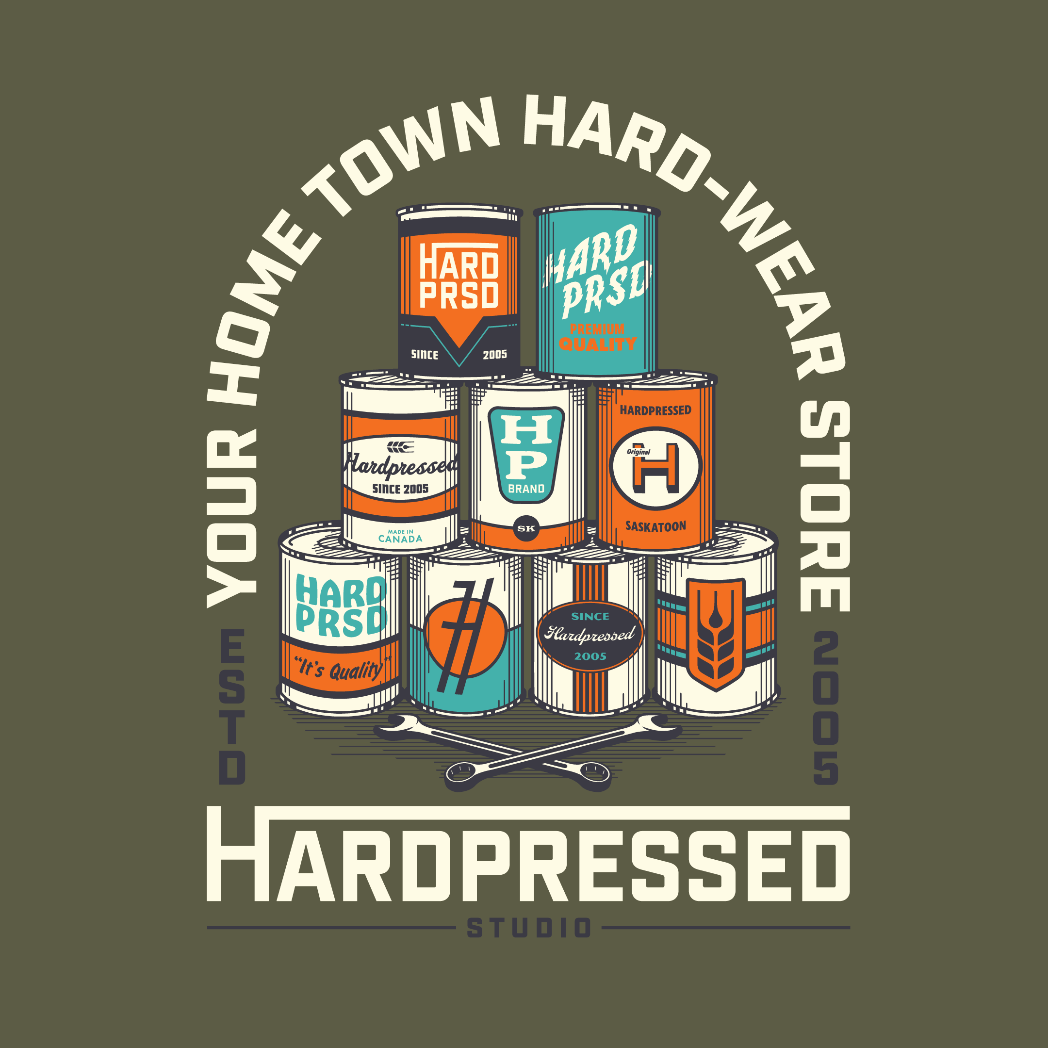 The Hard-Wear Store design is a nod to the old knick-knacks you might find in your grandpa’s shop. Things he kept around to organize his odds ‘n’ ends, but they ended up becoming unique collectibles. We took inspiration from mid-century packaging and added a touch of Hardpressed. Nothin’ beats a retro-style graphic.