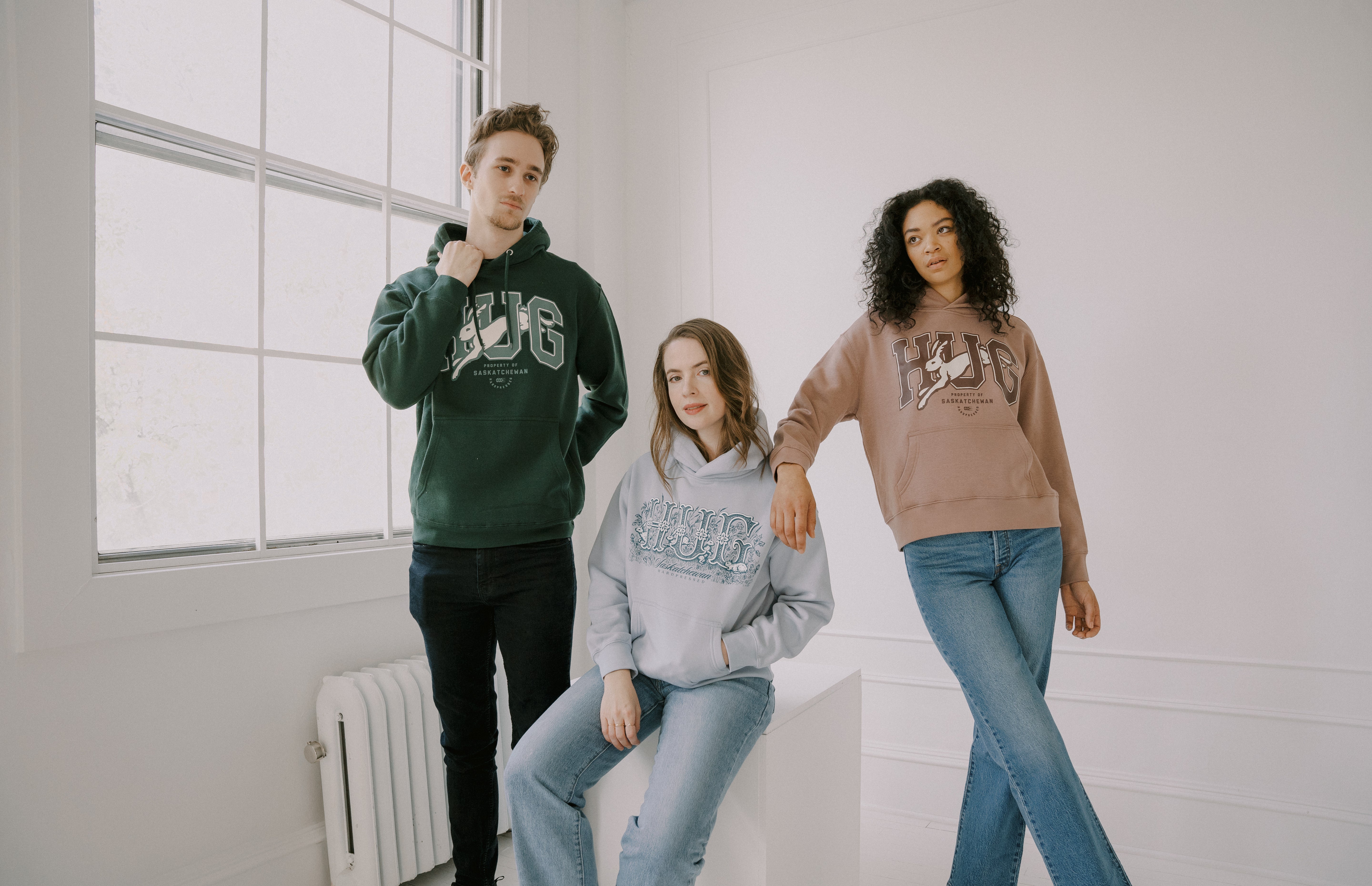 HUGs all around! A tribute to Saskatchewan’s favorite sweater, this bunnyhug is more than just a hoodie — it’s a piece of home. This collection wraps you up in that same warmth and comfort, wherever life takes you.